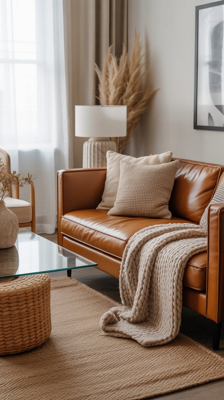 A common misconception is that modern spaces feel cold or lifeless, but that’s far from true. The warmth in Modern Living Room Decor often comes from texture contrast. Combining different materials — like smooth leather with woven fabric or polished wood with soft wool — creates layers that bring character to the room. Texture contrast makes a neutral space feel rich, cozy, and tactile. It engages your senses, making your living room feel alive and welcoming.