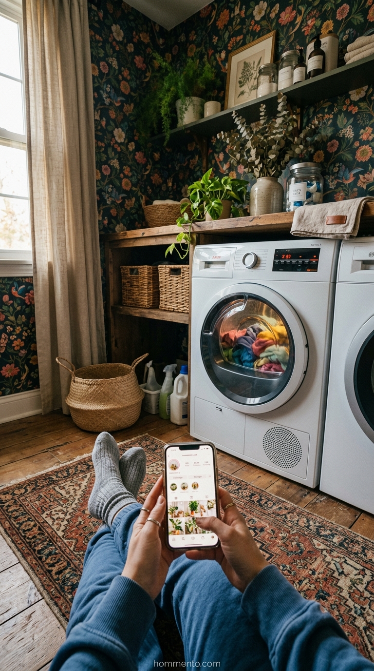 I’ll literally sit on the floor—the wallpaper makes it feel fancy, I swear—and scroll on my phone for twenty minutes while the dryer hums. It’s the only place in the house where nobody is asking me for a snack.