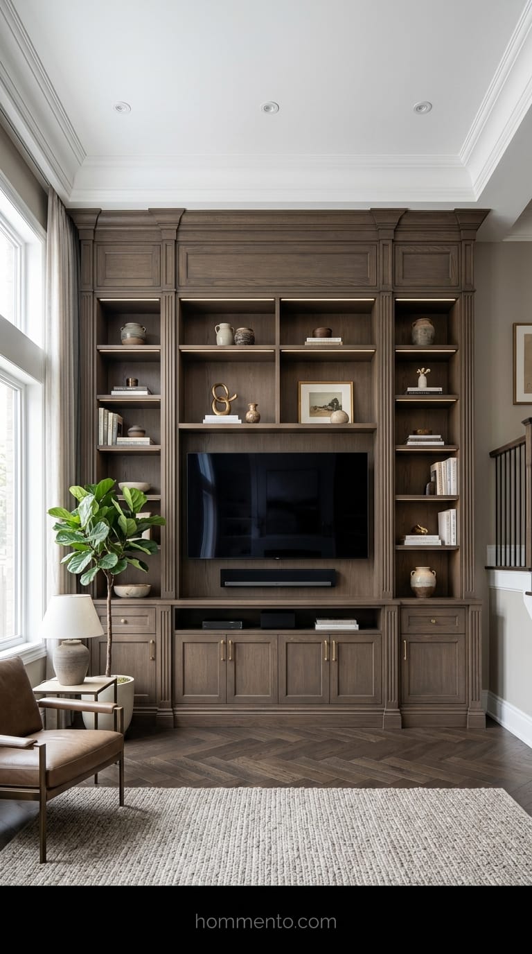 I spent three grand on a custom wall unit once. My wife hated it at first because it felt “heavy,” but now she loves that she can’t see my tangled mess of HDMI cables or the dust bunnies living behind the DVR. If you can’t afford custom, buy the tallest Billy bookcases you can find and trim them out with crown molding—it looks way more expensive than it is.