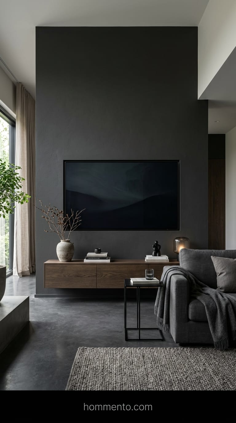 TVs are just giant black voids when they’re turned off. Instead of trying to fight it, I just lean into the darkness. I painted my entire back wall a color so dark it’s basically charcoal—it’s called ‘Iron Ore’ and it has a weirdly calming vibe.