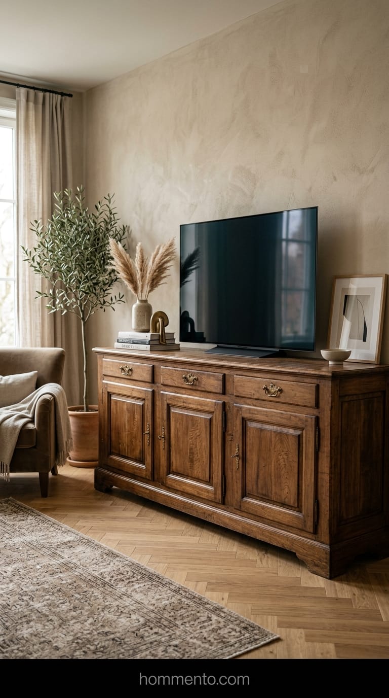 I’m done with those flimsy, hollow-core TV stands from big-box stores. They look like they’re made of cardboard because, well, they basically are. I spent fifty bucks on an old, scratched-up walnut sideboard at a thrift shop last year and it changed everything. It’s heavy. It’s got soul. Plus, the solid wood weight means my TV doesn’t wobble every time the dog runs past.